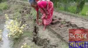 হিঙ্গলগঞ্জের গৌড়েশ্বর নদীবাধে ফাটল ২০০ ফুট,আতঙ্কে এলাকাবাসী দ্রুত বাঁধ মেরামতের দাবি