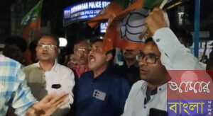গিরিশ পার্কের সংঘর্ষের আঁচ বরাহনগরে, ধৃত বিজেপি কর্মীদের মুক্তির দাবিতে সজল ঘোষের নেতৃত্বে থানায় বিক্ষোভ