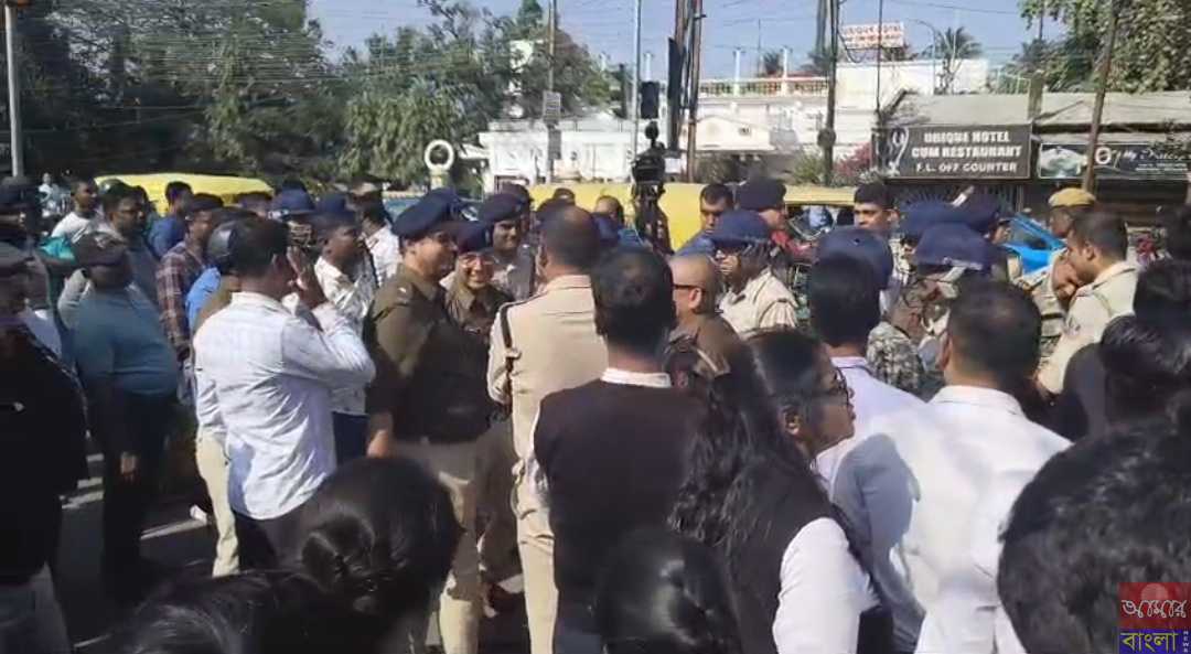 গতকাল উত্তর ব্যারাকপুর পৌরসভার 23 নম্বর ওয়ার্ডের কাউন্সিলর রবীন্দ্রনাথ ভট্টাচার্যের মারধরের কারণে মারা যায় ৮১ বছরের বৃদ্ধ তুলসী অধিকারী আর তারপর থেকেই শুরু হয় রাজনৈতিক তরজা। তড়িঘড়ি তৃণমূল থেকে রবীন্দ্রনাথ ভট্টাচার্যকে ছয় বছরের জন্য সাসপেন্ড করা হয়। এবং ব্যারাকপুর থানা তাকে প্রথমে আটক করে জিজ্ঞাসা করে পরে অ্যারেস্ট করা হয়। আজ রবীন্দ্রনাথ ভট্টাচার্যকে ব্যারাকপুর মহকুমা আদালতে পেশ করা হয়। পাশাপাশি রবীন্দ্রনাথ ভট্টাচার্যের ফাঁসির দাবিতে ব্যারাকপুরের প্রাক্তন সংসদ অর্জুন সিং ব্যারাকপুর চিড়িয়া মোড়ে গান্ধী মূর্তির পাদদেশে অবস্থান বিক্ষোভ করে। পরবর্তীতে স্লোগান দিতে দিতে ব্যারাকপুর মহকুমা আদালতের দিকে এগোতে থাকে আর তারপরেই শুরু হয় পুলিশের সাথে বিজেপির ব্যাপক ধস্তাধস্তি। যদিও বা সাময়িক সময়ের জন্য রাস্তা অবরোধ থাকলেও পরবর্তীতে পুলিশের তৎপরতায় সরিয়ে দেওয়া হয় অর্জুন সিংহ সহ বিজেপির কার্যকর্তাদের। অপরদিকে রবীন্দ্রনাথ ভট্টাচার্যকে চারটি ধারা দিয়ে আদালতে প্রার্থনা হয়। 103(1) 115(2) 126(2) 351(2) যারমধ্যে একটি জামিনঅযোগ্য অন্য তিনটি জামিনেরযোগ্য মামলা।
