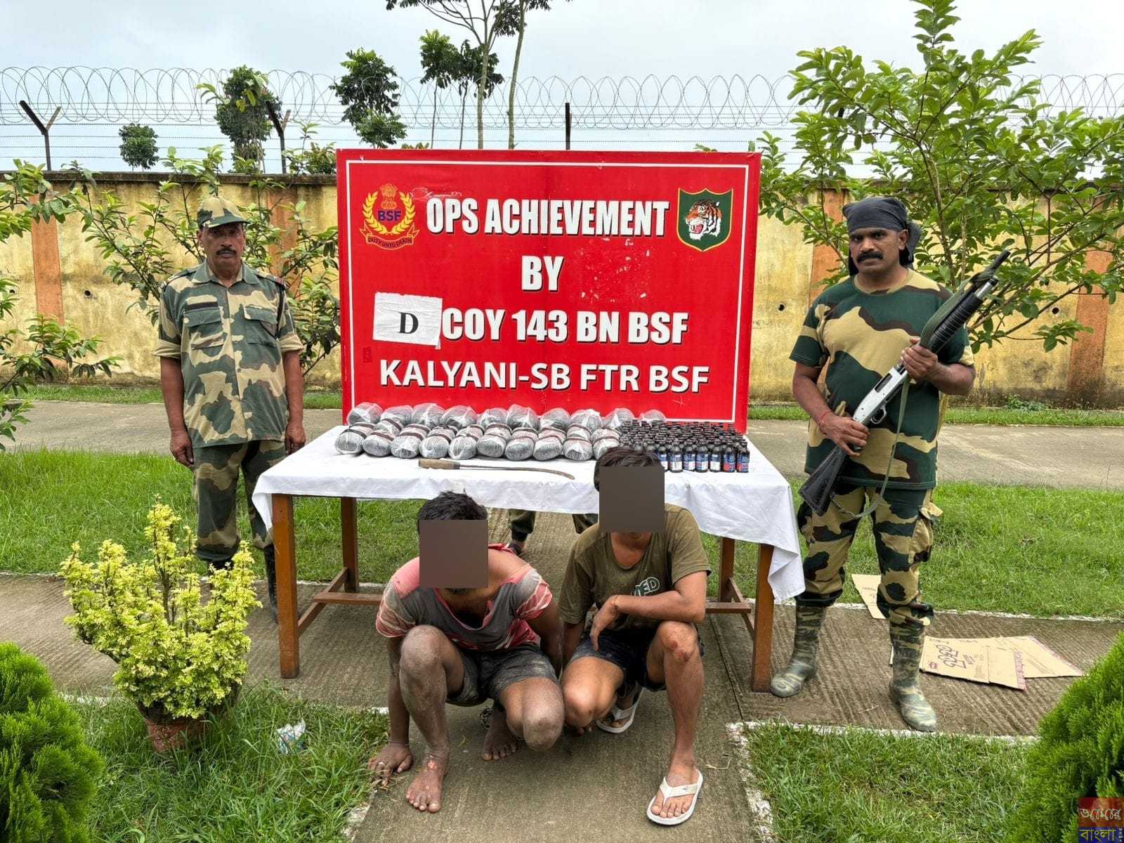 ভারত-বাংলাদেশ সীমান্তে মাদক পাচাকারী দের বিএসএফের উপরে হামলা। আহত বিএসএফের এক জওয়ান। মাদক পাচারের ঘটনায় গ্রেফতার দুই মাদক পাচারকারী। ঘাটিনটি ঘটেছে উত্তর ২৪ পরগনার বিএসএফের দক্ষিণবঙ্গ সীমান্তে। মাদক পাচারকারীরা হঠাৎ করে হামলা চালায় বিএসএফের উপরে। যার জবাবে ১৪৩ ব্যাটালিয়নের বিএসএফ জওয়ানরা পাল্টা ধাওয়া দিয়ে দুজন মাদক পাচারকারীদের কে গ্রেফতার করতে সক্ষম হয়। নিজেদের আত্মরক্ষায় বিএসএফের পক্ষ থেকে প্লাটা ফায়ারিং করা হয়। তার পরেই দুজন পাচারকারী কে গ্রেফতার করা হয়। ঘটনাস্থল থেকে ১০ কেজি গাঁজা, ১০০ বোতল ফেন্সিডিল এবং একটা অস্ত্র উদ্ধার করল বিএসএফ। তবে পাচারকারীদের সঙ্গে সংঘর্ষ ধরলোর অস্ত্র দ্বারা আহত হন এক বিএসএফ জওয়ান। তার বা হাতে আঘাত পেয়েছেন তিনি। সূত্রের খবর গতকাল রাত প্রায় ১:৫০ নাগাদ দ্বিতীয় পালি চেক পোস্টে কর্তব্য পালন করছিলেন বিএসএফ জওয়ানরা। সেই সময় দেখা যায় ৩ থেকে ৪ জন সন্ধভাজন ব্যক্তিরা ব্যাকলোড করে আন্তর্জাতিক সীমান্তে দিকে এগোচ্ছিলেন। তাৎক্ষণিক বিএসএফ জওয়ানরা তাদের কে থামতে বলেন। কিন্তু সেই পাচারকারীরা না দাড়িয়ে পাথর বৃষ্টি করে এবং অভদ্র ভাষায় গালিগালজ শুরু করে দেয়। টর্চ লাইট জ্বালিয়ে পালানোর চেষ্টা করে আক্রমণ করে। পরিস্থিতি বুঝে প্রথম পাচারকারী দের সতর্ক করে হাওয়ায় ফায়ারিং করে। তার পরে ও না মানায় পাল্টা তাদের হাতে আত্মরক্ষার জন্য ফায়ার করা হয়। তারা হচ্ছে এসে একজন বিএসএফের জওয়ান কে ধারালো অস্ত্র দিয়ে হামলা চালায়। তার পরেই অন্য জওয়ানরা চালানোর চেষ্টা করা পাচারকারী দের পালানোর চেষ্টা ব্যর্থ করে দুজন মাদক পাচারকারী দের আটক করে গ্রেফতার করে বিএসএফের ১৪৩ ব্যাটালিয়ন। তাদের কাছে বিপুল পরিমানে মাদক সামগ্রী গাঁজা সহ ফেনসিডিল উদ্ধার করে বিএসএফ। ভারত – বাংলাদেশ সীমানায় বাংলাদেশ থেকে প্রবেশকারীরা ও দুষ্কৃতীর চক্র বাড়ছে। যার ফলে বারবার বিএসএফের পক্ষ বিজিবি সঙ্গে একাধিক বার ফ্ল্যাগ মিটিং করে তাদের কে সচেতন করা হয়েছে বিকিএসএফের পক্ষ থেকে। বিএসএফ দেশের সুরক্ষার ও নিরাপত্তা নিশ্চিত করতে বদ্ধপরিকর। তাই যে কোনো ক্ষেত্রে নিজের আত্মরক্ষার জন্য প্রস্তুত ভারত-বাংলাদেশ সীমান্তে অনুপ্রবেশ রুখতে তৎপর বিএসএফ জওয়ানরা।